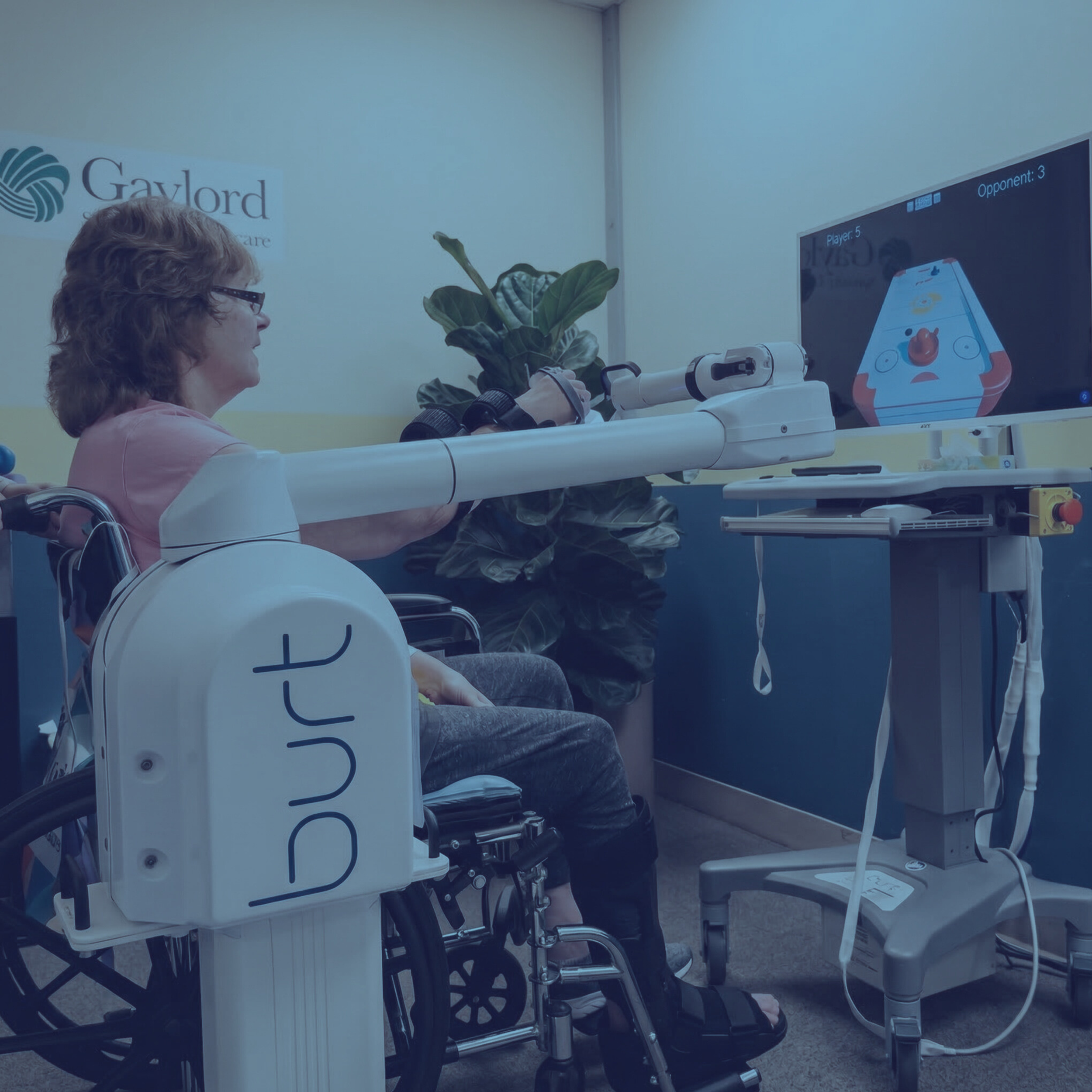 Burt® uses state of the art GravityCradle™ technology to support your arm as if you were in zero gravity— yes, it feels like your arm is floating! The robot does the grunt work and leaves your therapist more time to focus on you,accelerating your recovery.